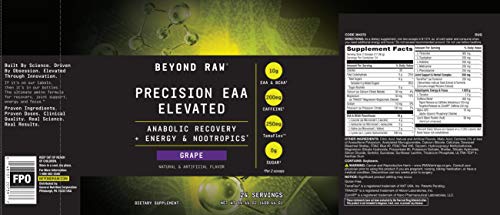 Beyond Raw Precision EAA Elevated Powder | Anabolic Recovery for Muscles + Energy | Grape | 24 Servings