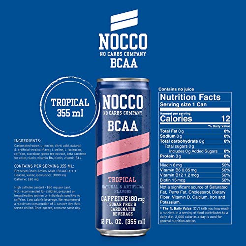 NOCCO – BCAA Post Workout Recovery Drink Bundle – Sugar Free with BCAAs Amino Acids, Low Calorie Supplement Drinks for…