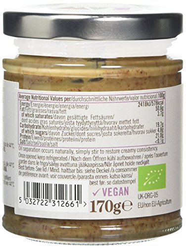 Raw Health Vibrant Living Organic Raw Scrumptious Whole Almonds Butter is Good on it is own or to bring a lively addition to your recipe. This butter combines the superfood maca with the sweet taste of tiger nuts which despite their name are actually tubers from the Cyprus esculents plant and not nuts. Organic, raw and brimming with nourishing goodness. Deliciously smooth, tasty and nutritious whole almonds butter features high fibre content. Source of heart-healthy monounsaturated fats. No added cane or beet sugar. Made from raw ingredients which have not been heated above 44 degrees Celsius. Available in 170 g jar.
